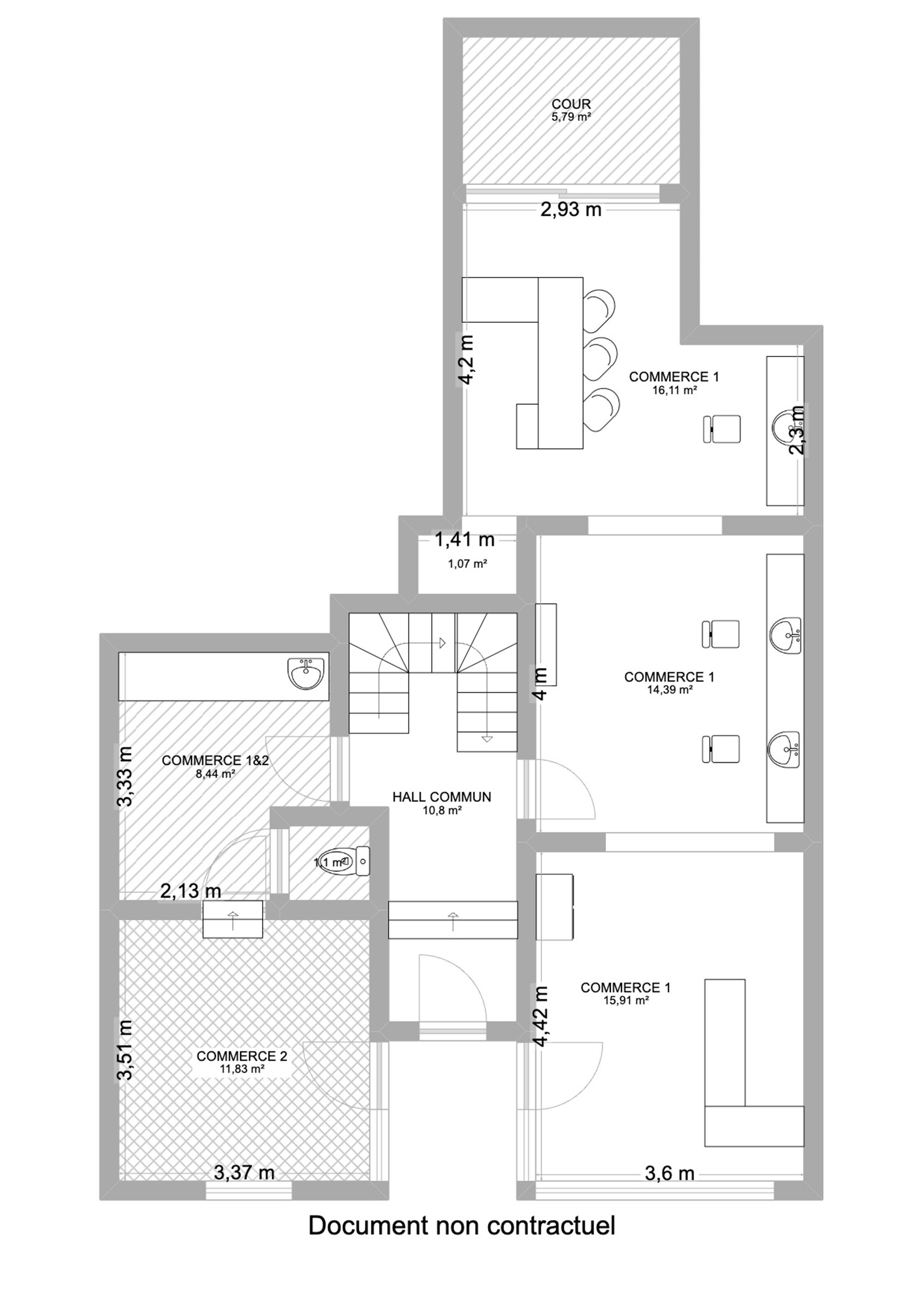 Le commerce est composé de 2 surfaces commerciales. La seconde partie n’est actuellement pas exploitée, l’idéal serait de proposer des services complémentaires (Esthétique, massage, soin,…)
