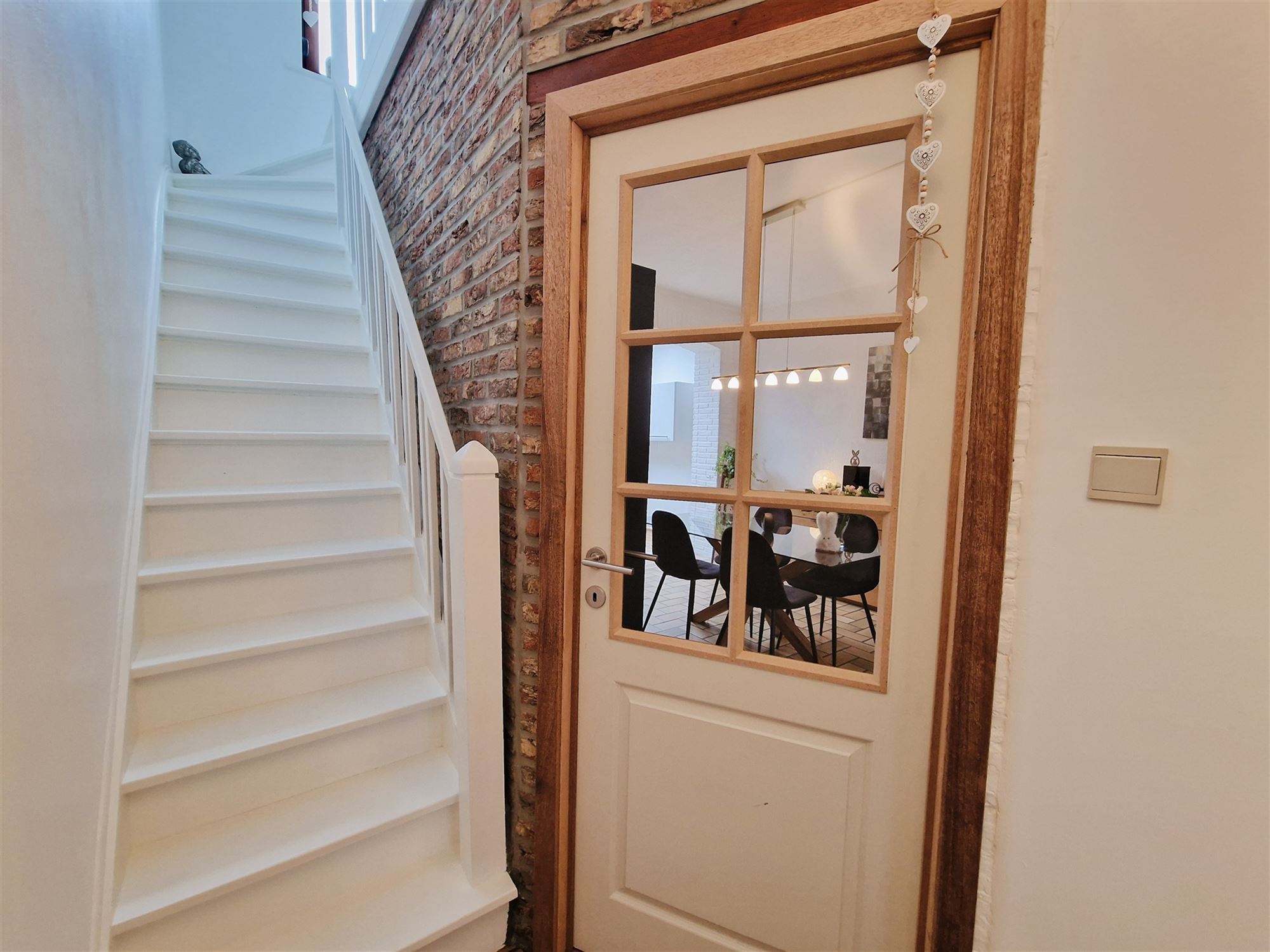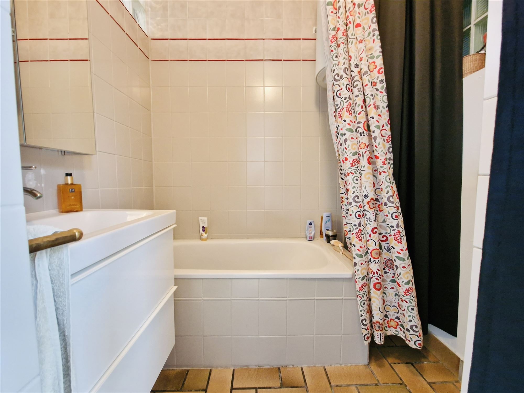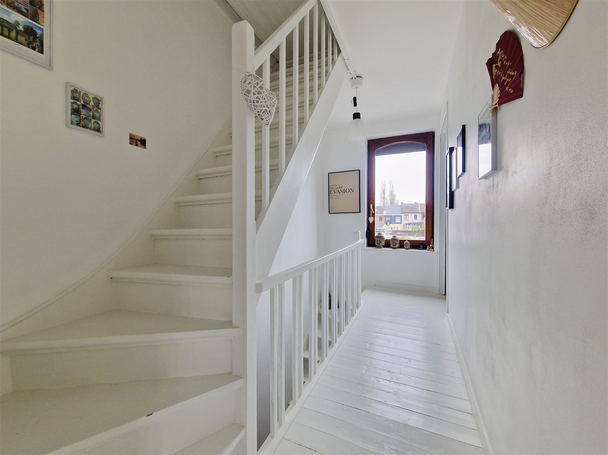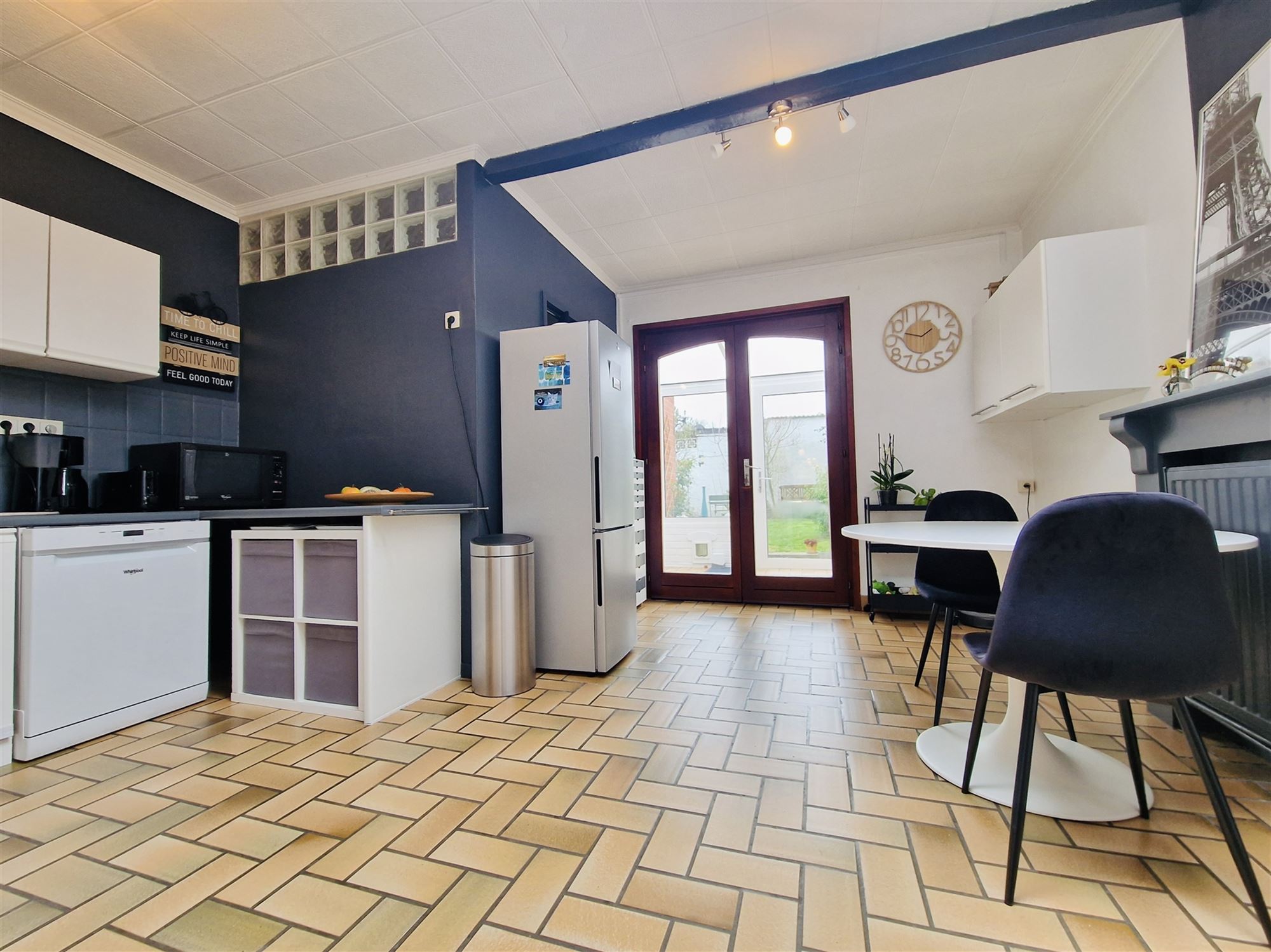 ** Rez-de-chaussée : Un hall d’entrée accueillant vous mène vers un séjour lumineux de 26 m², composé d’un salon et d’une salle à manger avec une grande fenêtre à l’avant. Celui-ci s’ouvre sur une grande cuisine ouverte et équipée de près de 20 m², éclairée par une fenêtre de toit qui inonde l’espace de lumière naturelle. À l’arrière, on retrouve une salle de bains avec lavabo et baignoire, une véranda de 7 m² donnant accès à une toilette séparée, à l’emplacement pour lave-linge/sèche-linge et à un petit débarras.