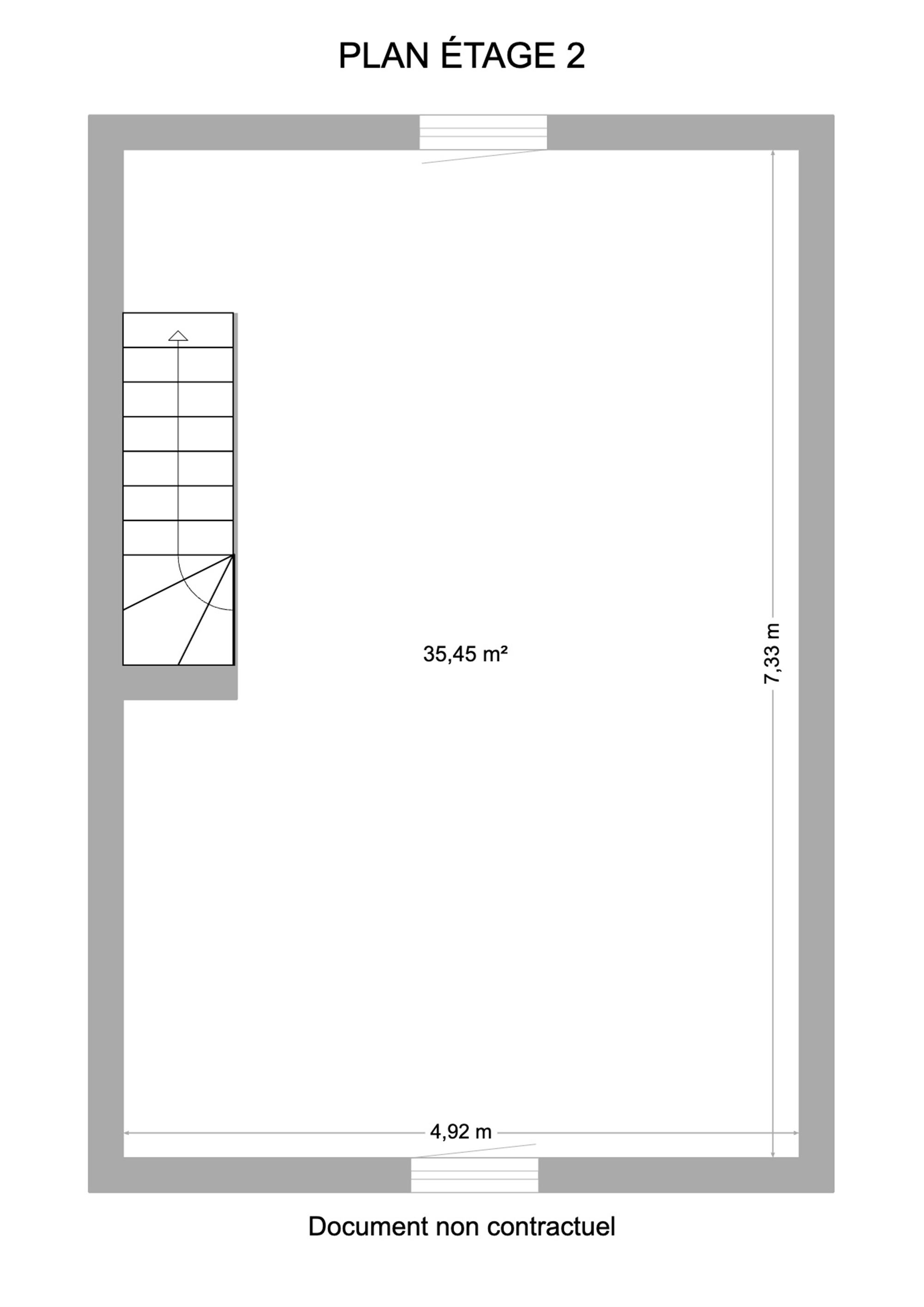 ** Deuxième étage : Un grenier aménageable de 35,4 m², accessible via un escalier, idéal pour créer une troisième chambre, un bureau ou un espace polyvalent.