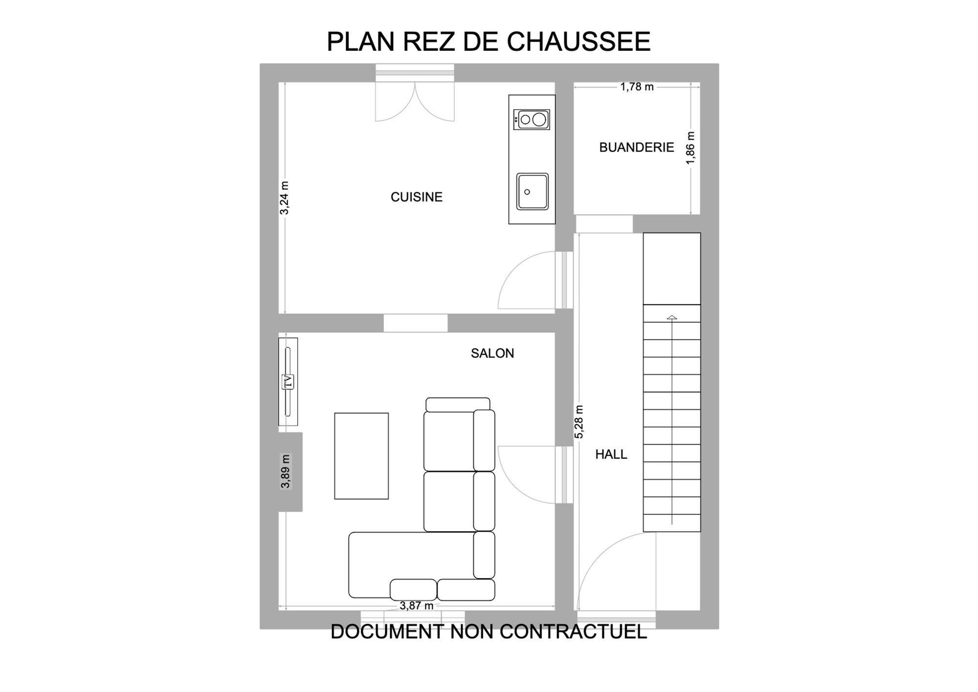 ** Rez-de-chaussée : Un hall d’entrée avec placard et penderie intégrée vous accueille et vous guide vers un espace salon avec poêle à bois, prolongé par une cuisine avec accès direct au jardin. Ce niveau comprend également une buanderie pratique, parfaite pour les équipements ménagers.