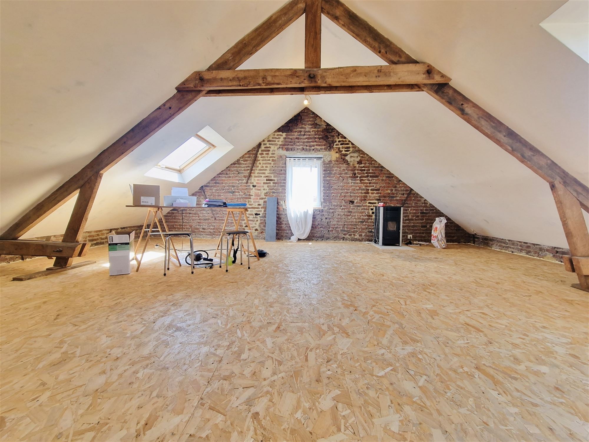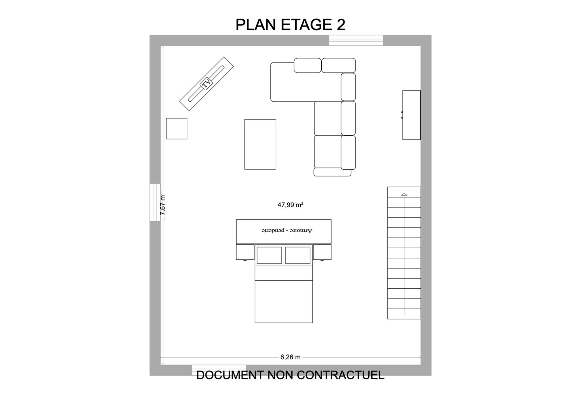 ** Deuxième étage : L’étage supérieur se consacre à une grande chambre parentale de 40 m², idéale pour accueillir un coin salon en plus du coin nuit, créant ainsi un véritable espace suite. Cet espace contient un poêle à pellets