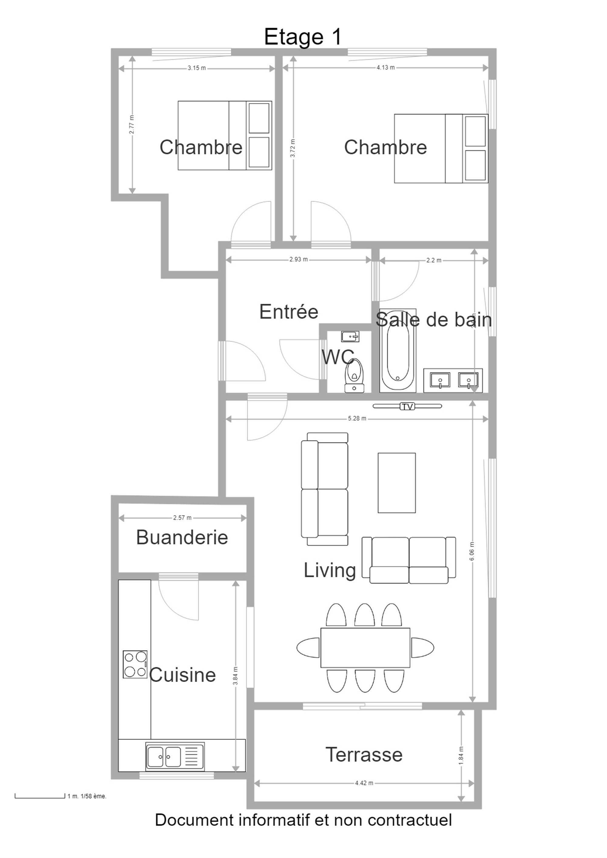 Un emplacement de parking dans un garage sécurisé est vendu obligatoirement avec l’appartement pour 25.000 € en sus.