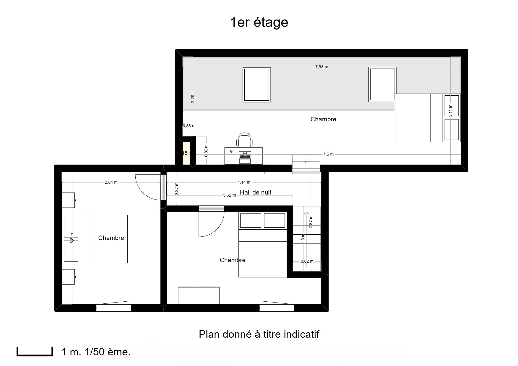 A l’étage, vous trouverez 3 chambres confortables ainsi qu’un grenier de rangement dans les combles.