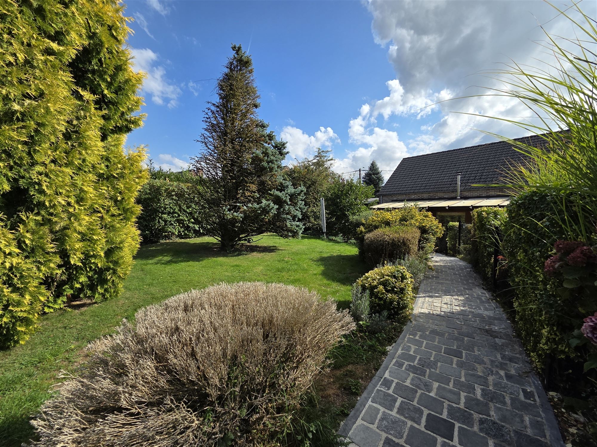 PASIMMO AGENCE 1% vous présente cette agréable villa 4 façades située à Durnal, érigée sur un beau terrain de 12 ares 14 joliment arboré, avec double garage et panneaux solaires !
