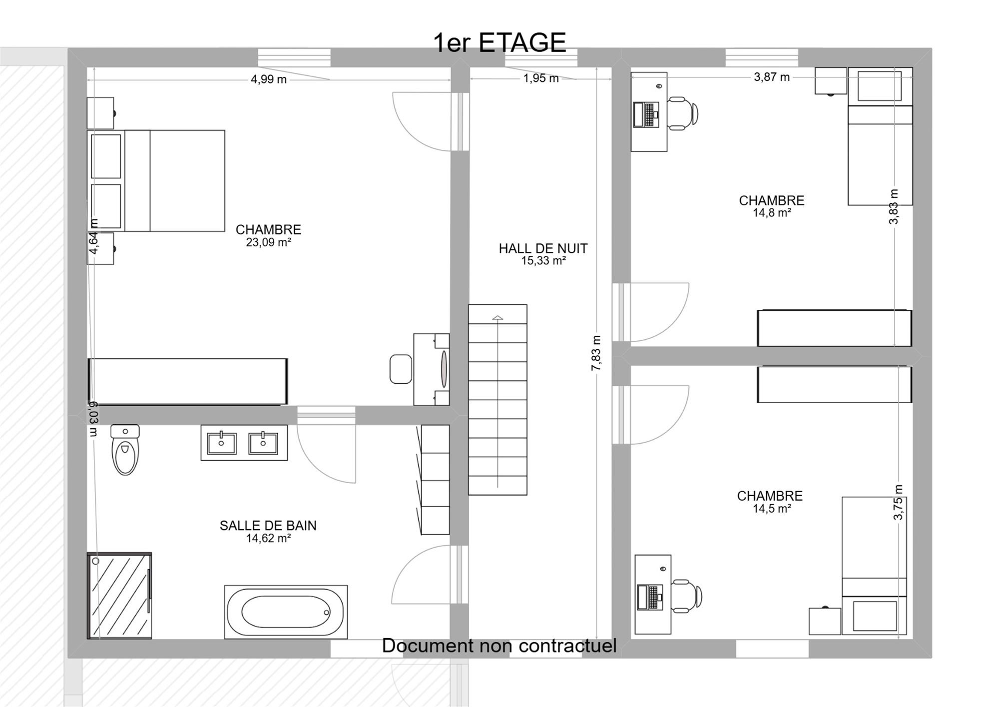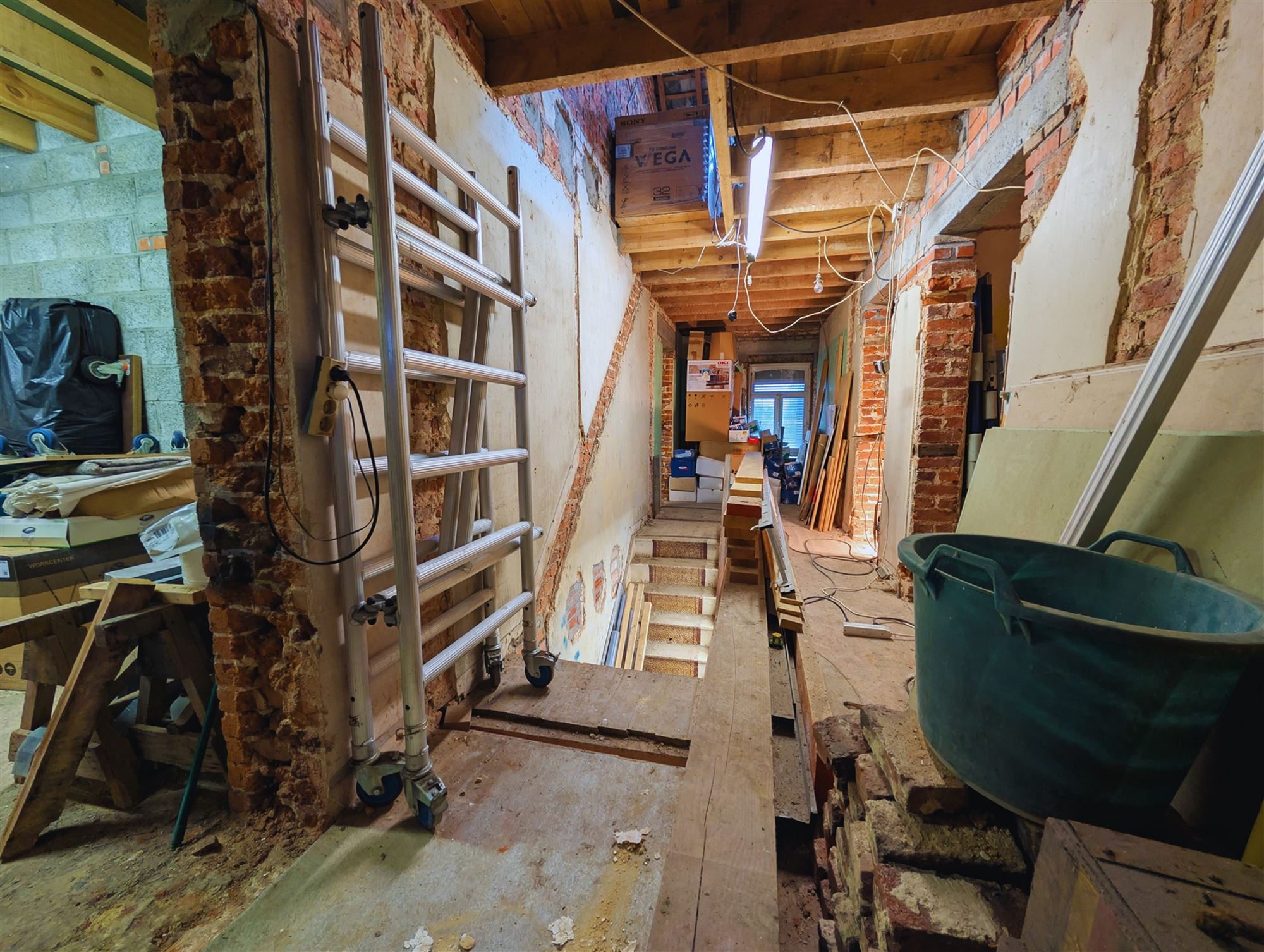 **À l’étage : trois espaces de chambres, dont une belle suite parentale avec possibilité de mezzanine, et une future salle de bain.
