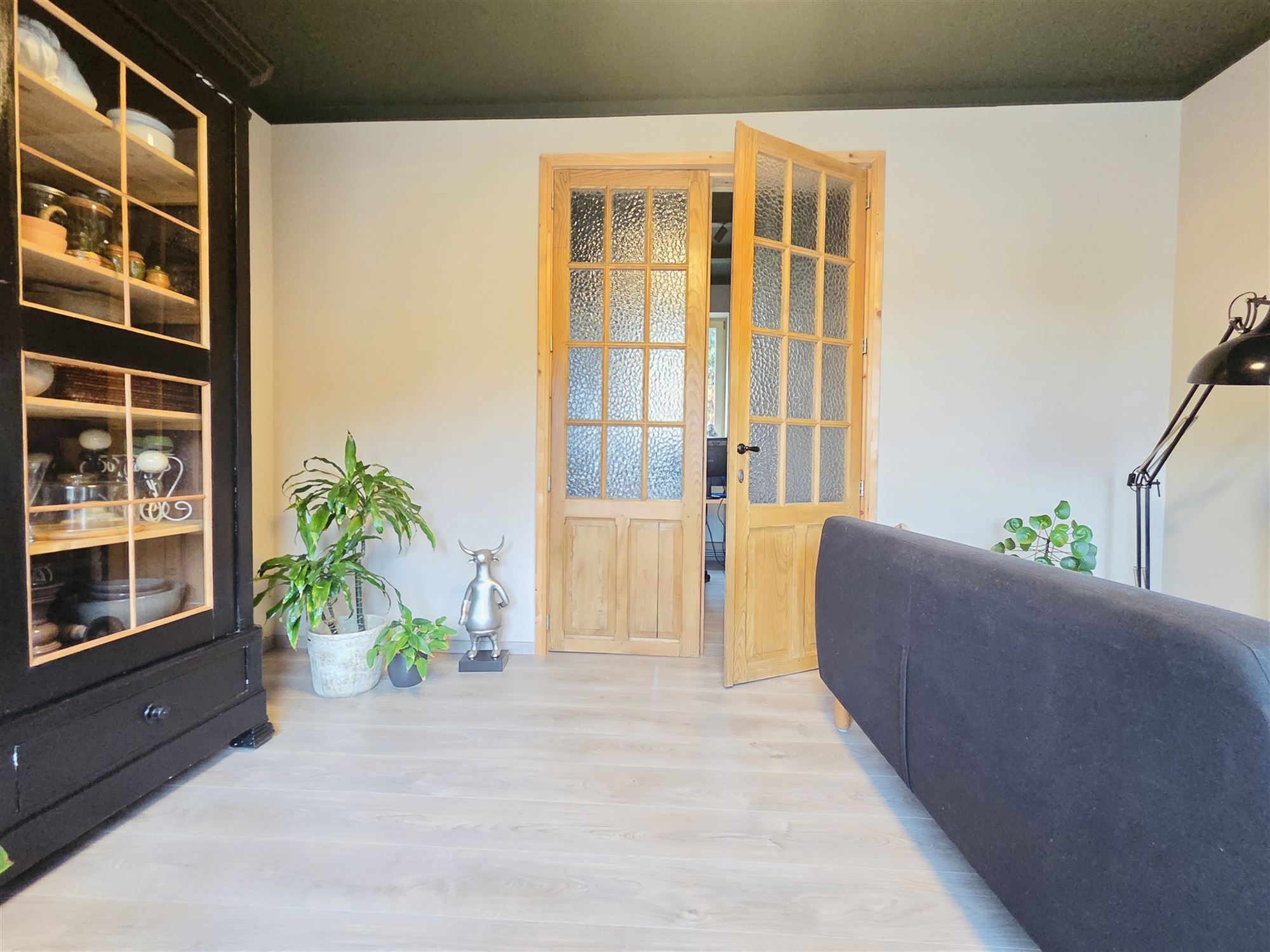 Le rez-de-chaussée offre également une possibilité de chambre, avec un espace salle de bain, ainsi qu’un espace idéal pour une activité professionnelle ou le télétravail.