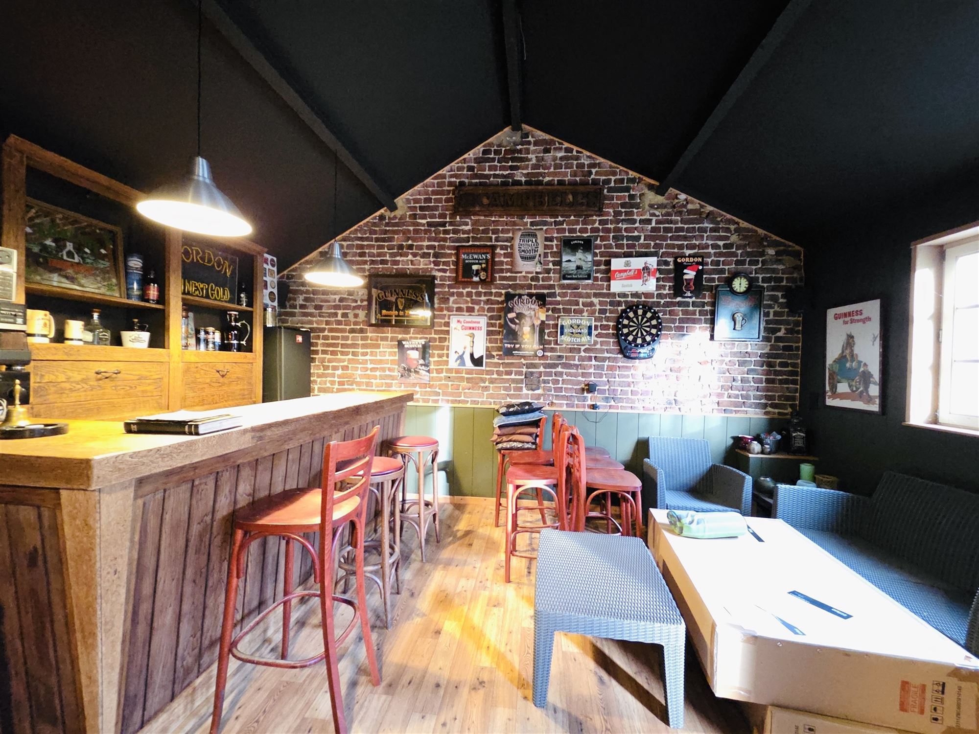 À l’extérieur, vous profiterez d’un atout totalement unique : un Irish Pub privé de 31 m², comprenant un coin bar et un espace détente, idéal pour recevoir famille et amis.