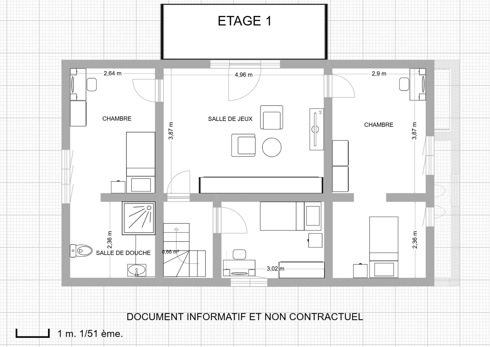 L’agencement est idéal pour une vie de famille harmonieuse : Rez-de-chaussée : Une chambre spacieuse, une salle de bains et un WC. Étage : Un hall de nuit desservant 3 chambres supplémentaires, ainsi qu’une seconde salle de douche avec WC.