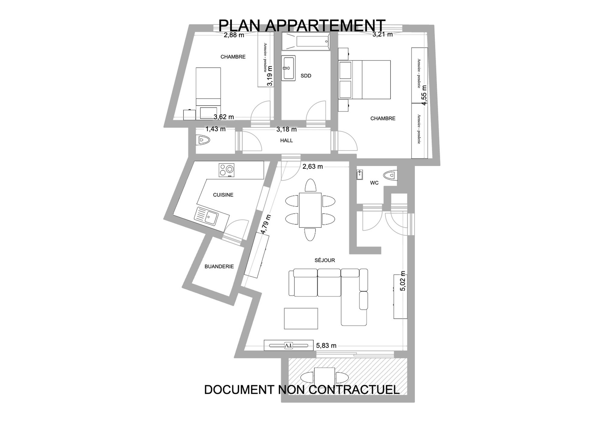 _ Petit balcon avec espace de rangement ;