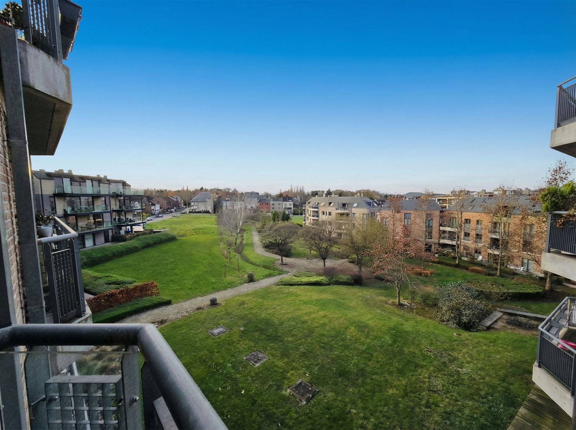 ** Deuxième étage : Un hall d’entrée avec WC séparé mène vers un séjour très agréable, offrant un accès direct à un petit balcon avec vue sur le parc intérieur.