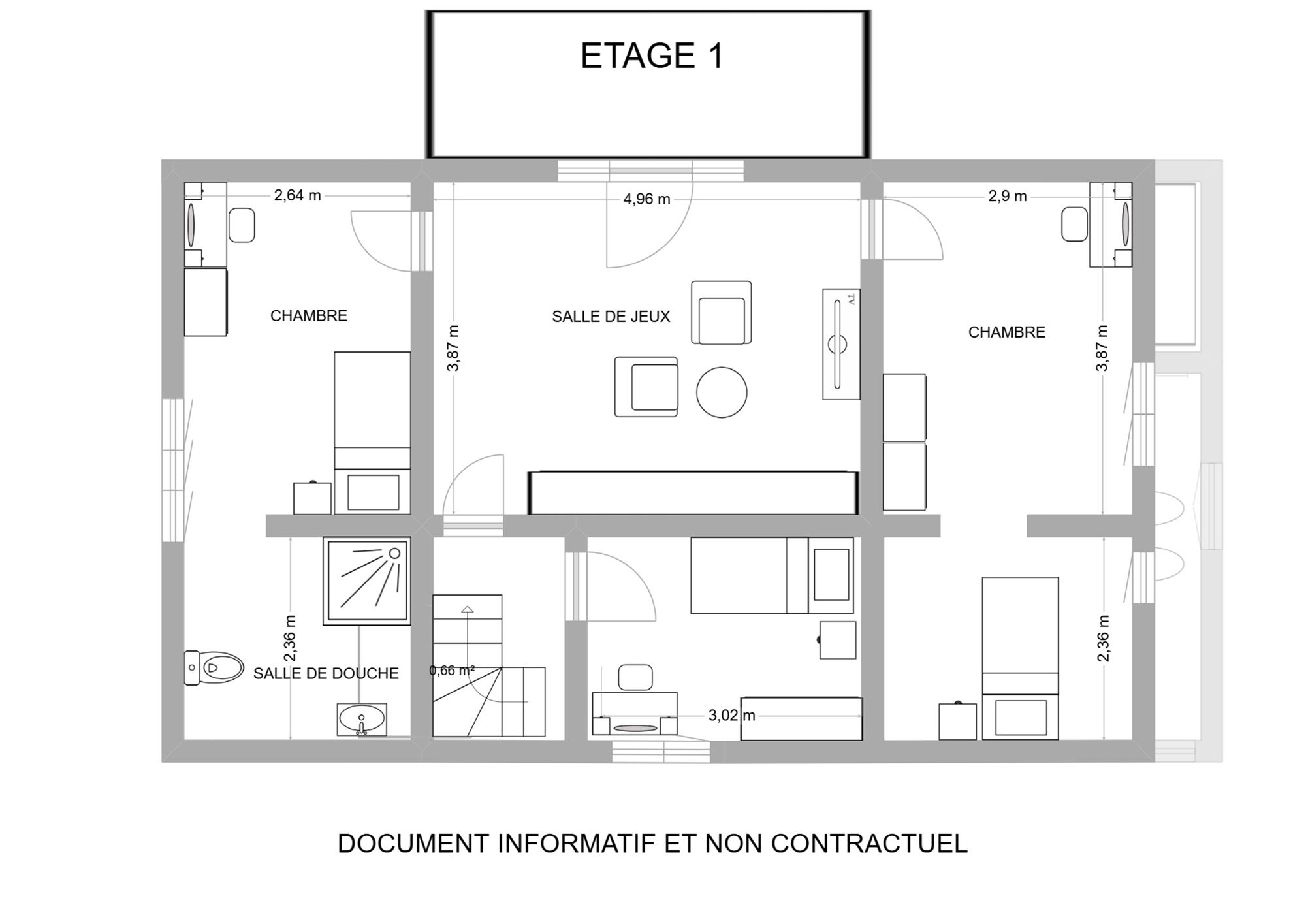 L’agencement est idéal pour une vie de famille harmonieuse : Rez-de-chaussée : Une chambre spacieuse, une salle de bains et un WC. Étage : Un hall de nuit desservant 3 chambres supplémentaires, ainsi qu’une seconde salle de douche avec WC.