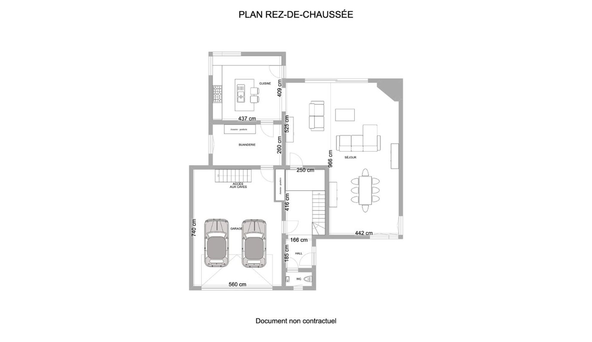 – Au rez-de-chaussée : Hall d’entrée spacieux avec vestiaire, toilette, séjour de 56m² avec insert au gaz et accès sur le jardin, cuisine ouverte et super équipée, buanderie, double garage.