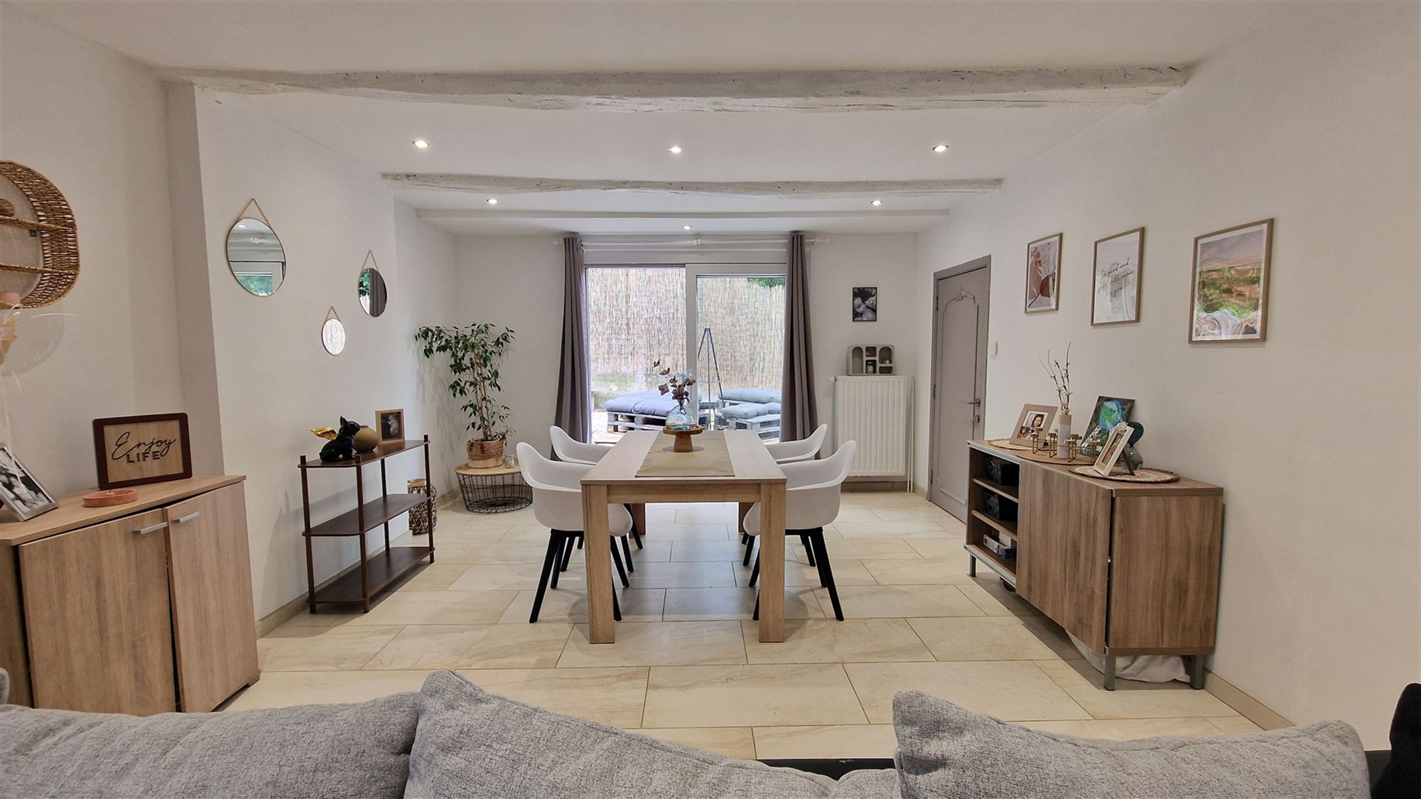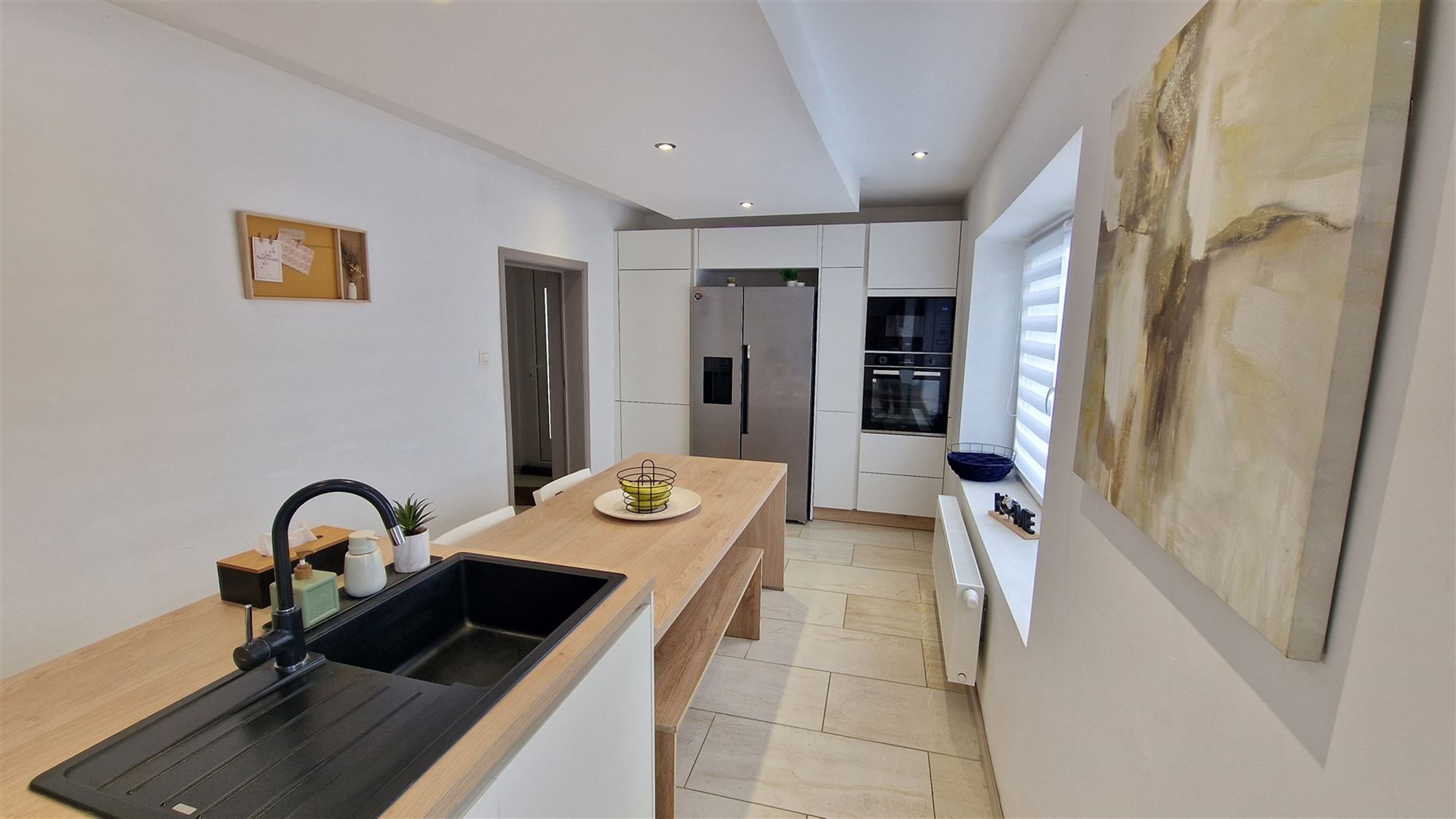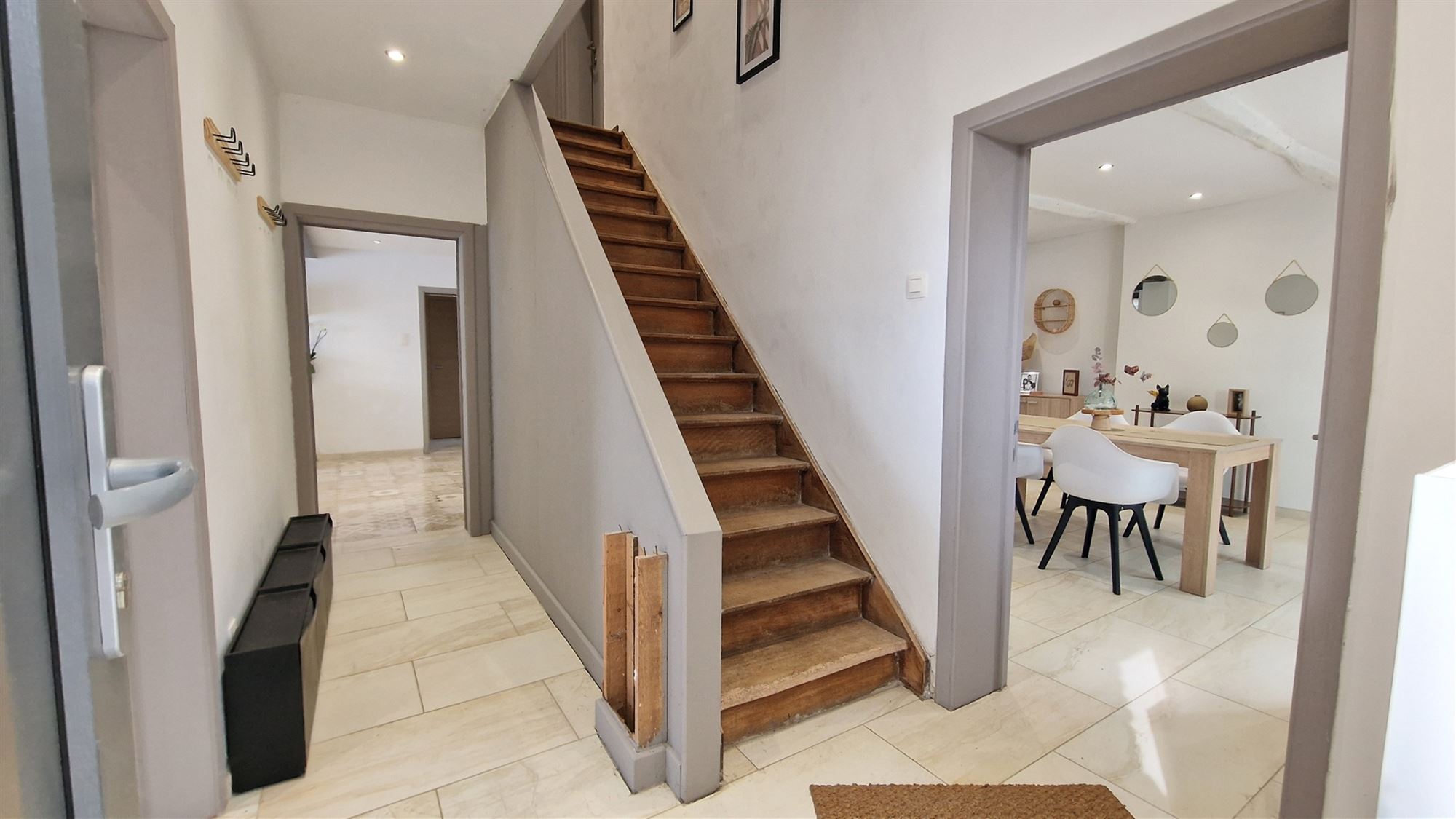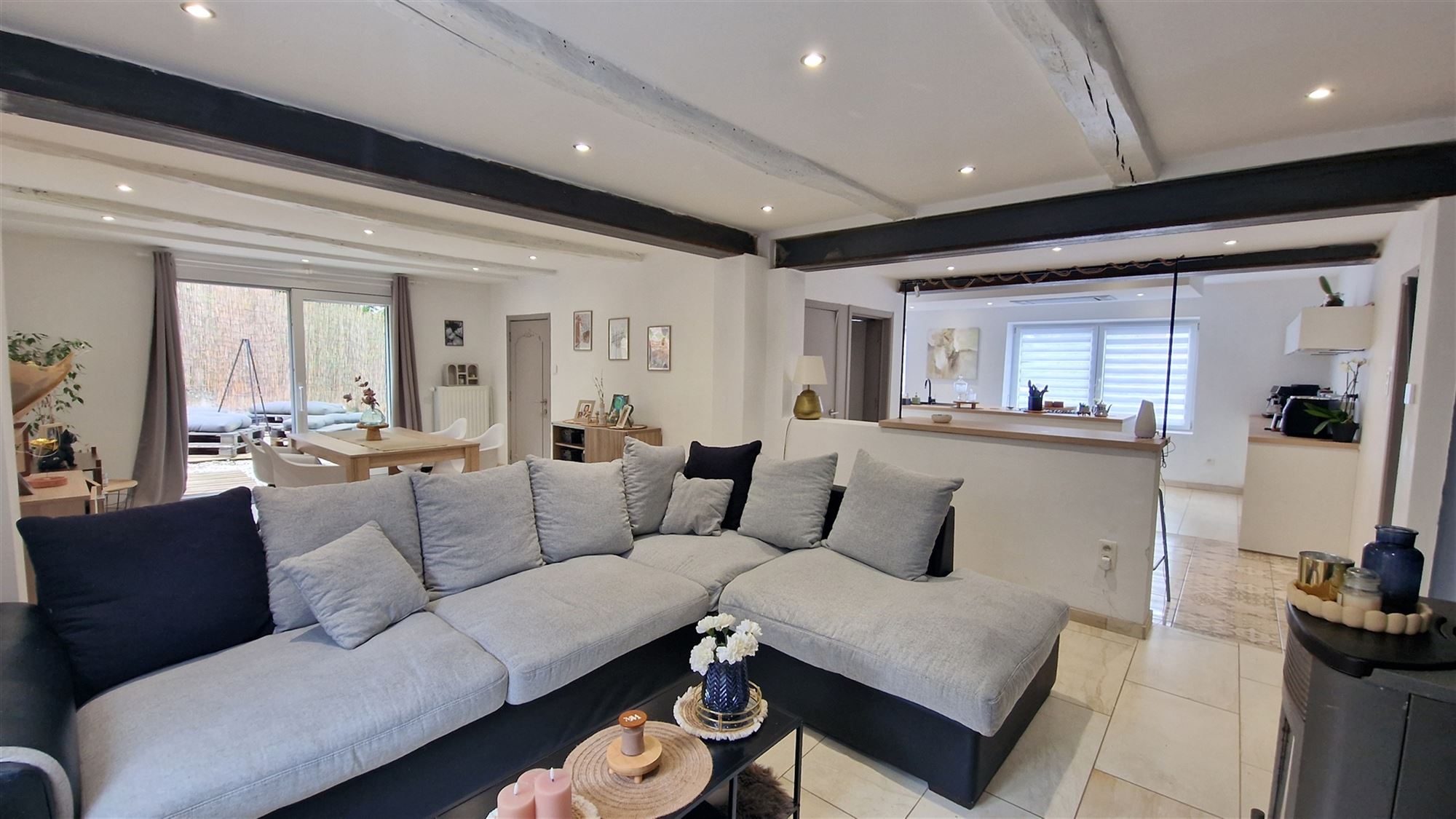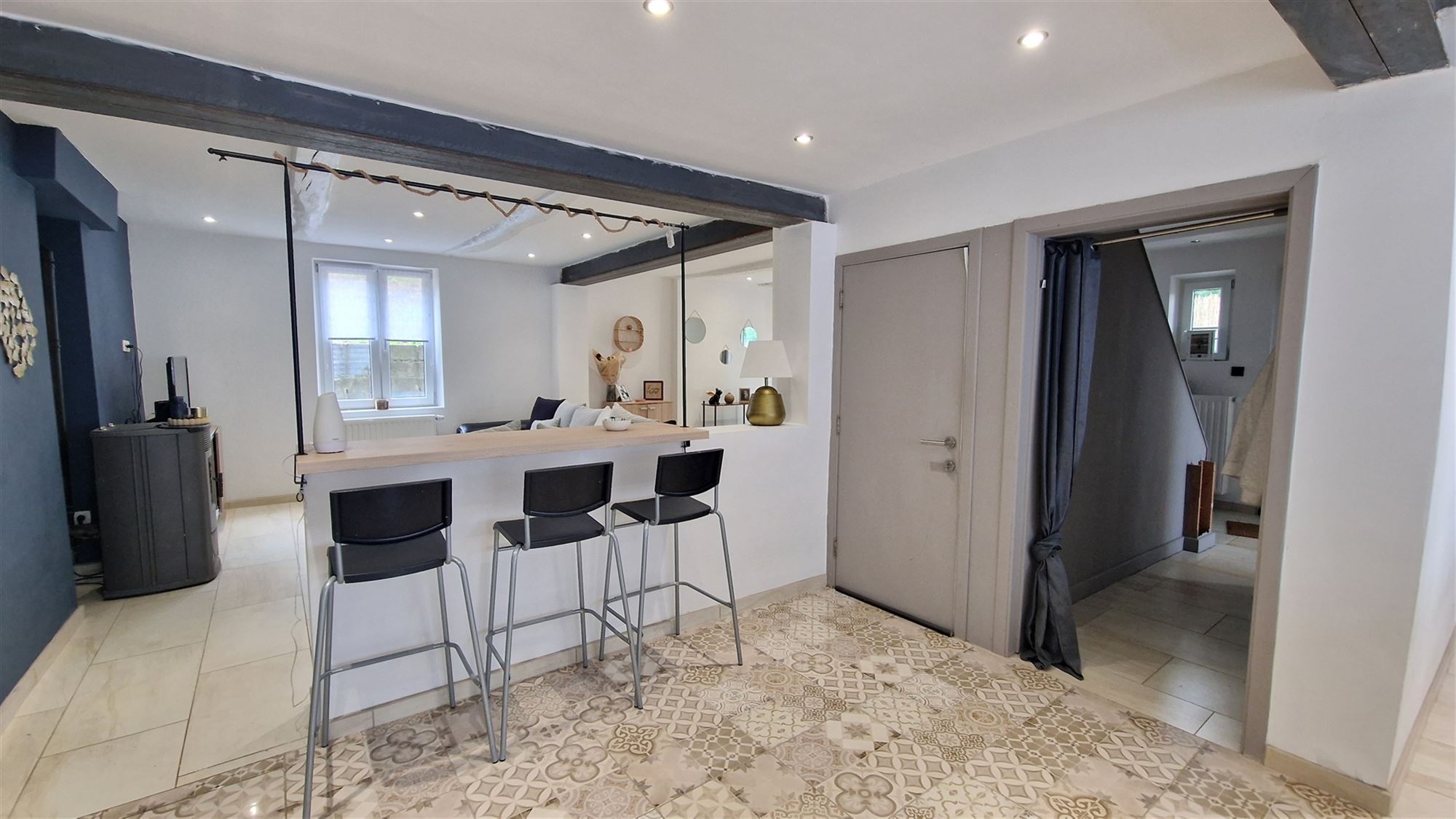En entrant, vous serez accueilli par un rez-de-chaussée lumineux et bien agencé, composé d’un salon avec poêle à pellets et d’une salle à manger ouverte, parfaits pour accueillir vos invités ou passer des moments en famille. La cuisine moderne et entièrement équipée s’ouvre sur une pièce polyvalente qui peut être utilisée comme espace de bureau, de jeu ou de détente. Cette pièce polyvalente est accessible via une entrée indépendante, l’occasion idéale d’exercer une activité professionnelle.