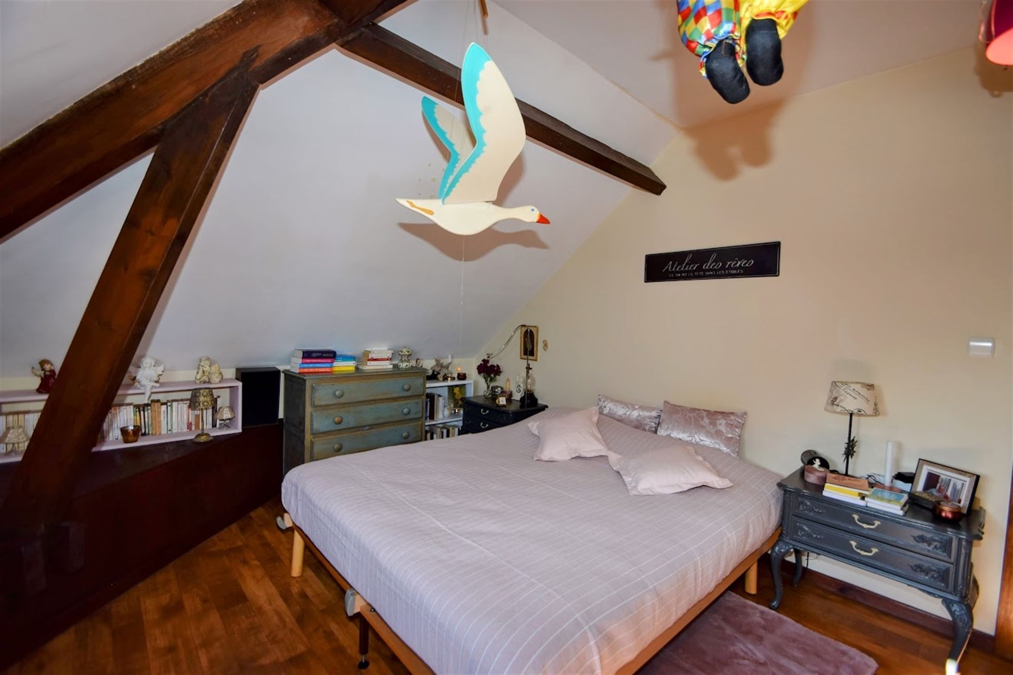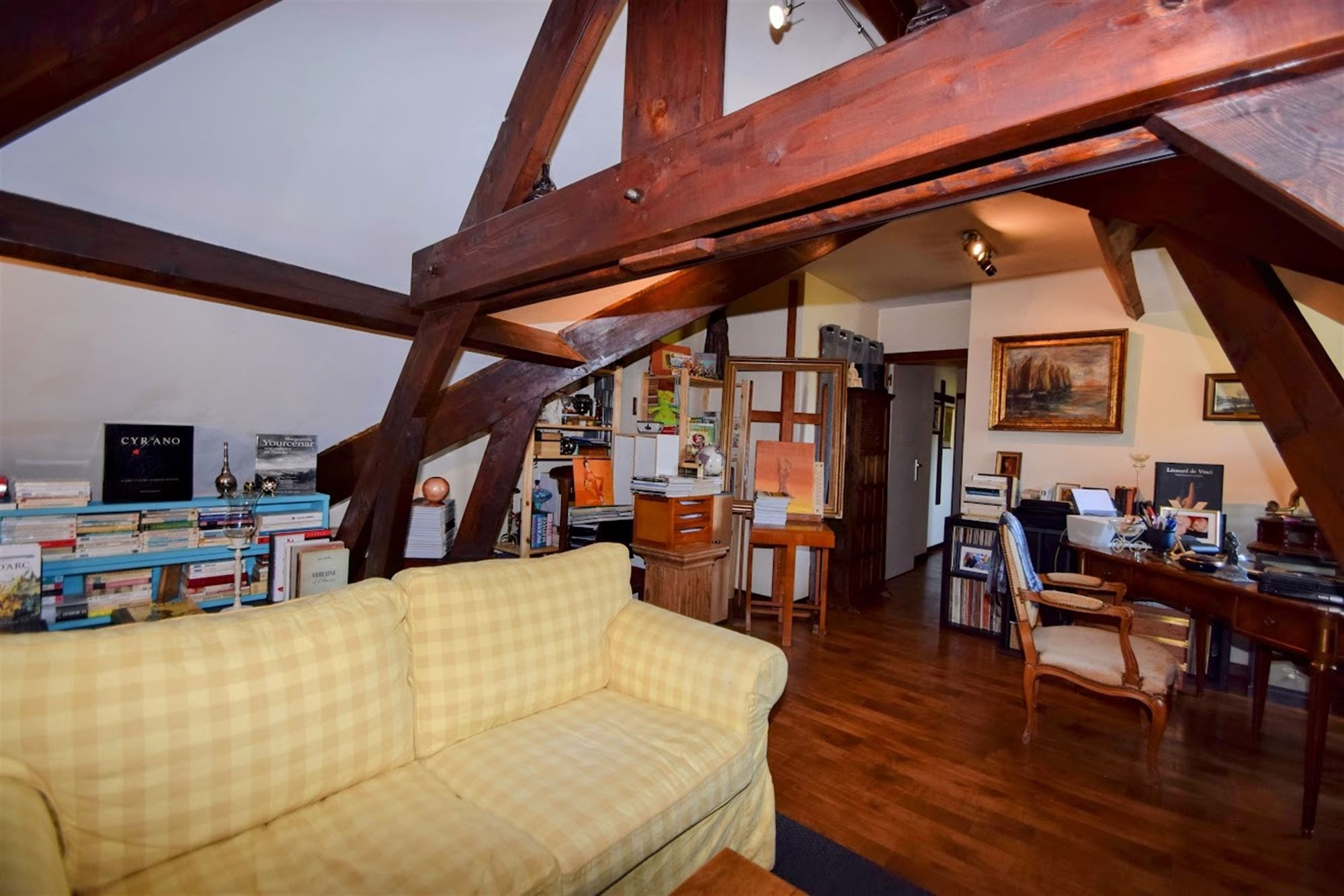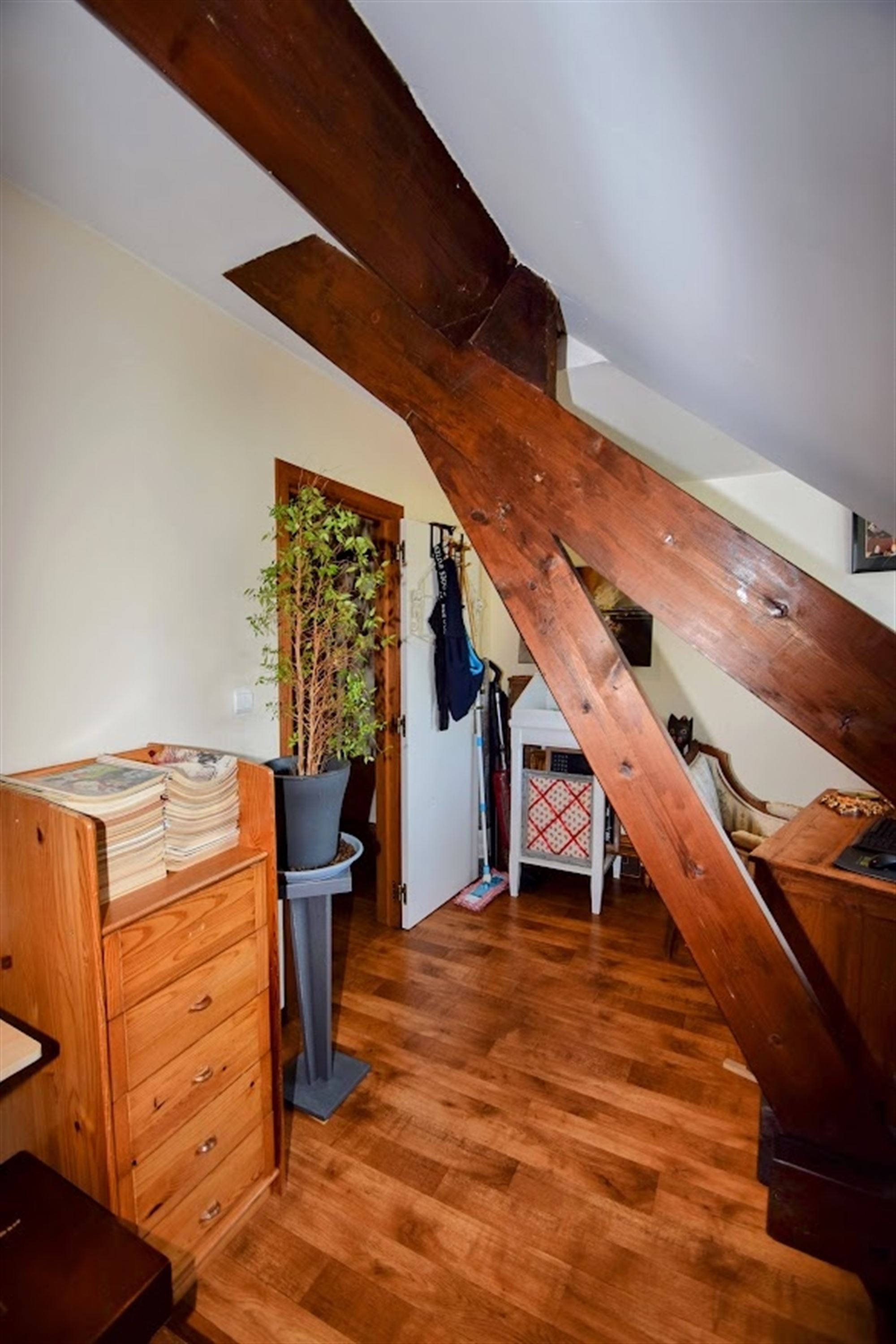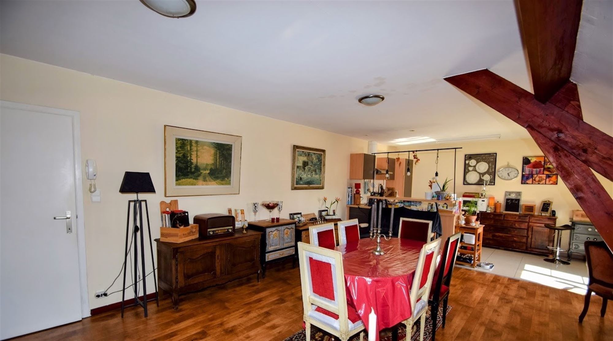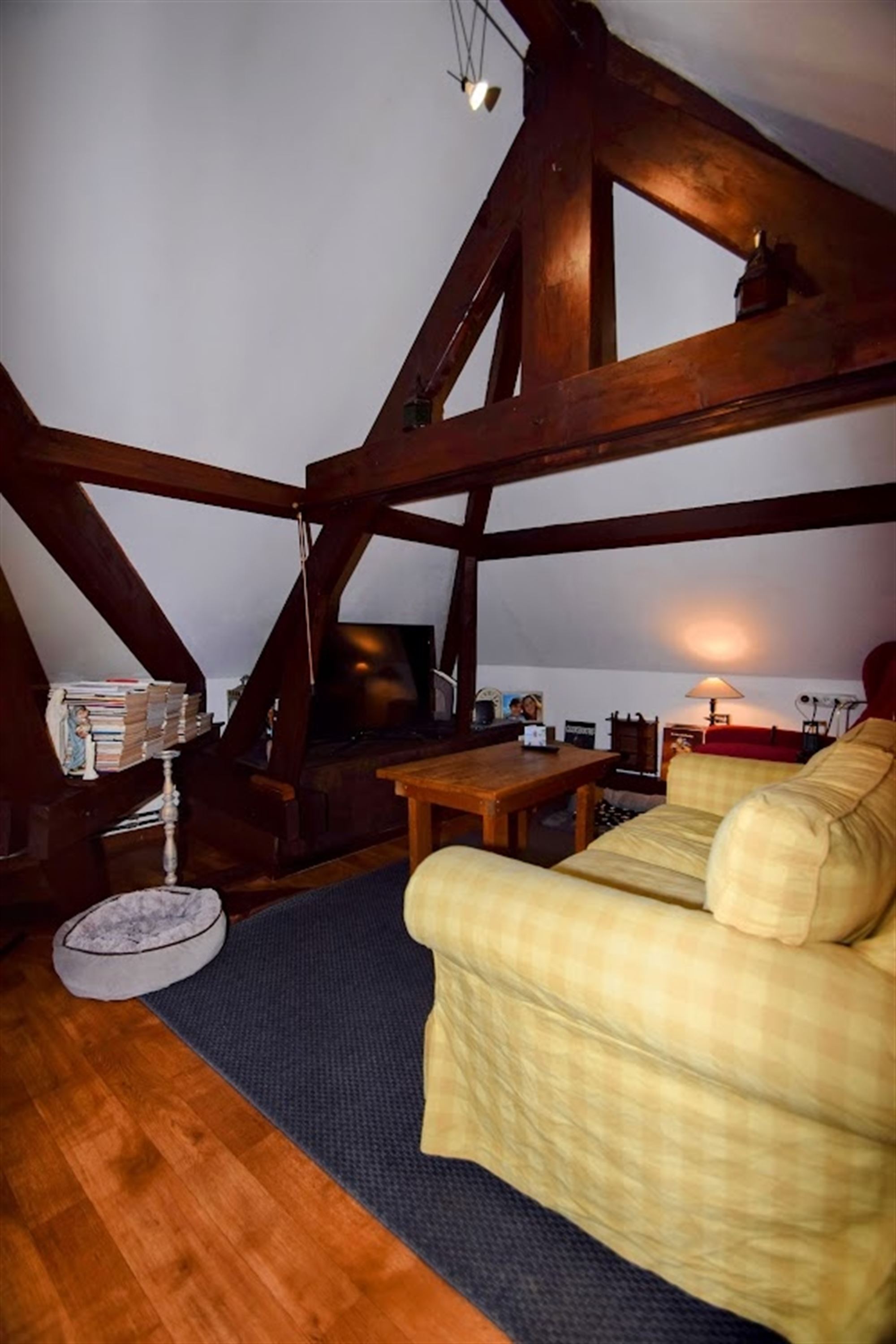 L’espace de vie est particulièrement accueillant, avec un salon-salle à manger agrémenté de poutres apparentes qui ajoutent un cachet indéniable à la pièce. La cuisine ouverte est modernement équipée, permettant ainsi de préparer des repas tout en restant connecté avec le reste de la maison.