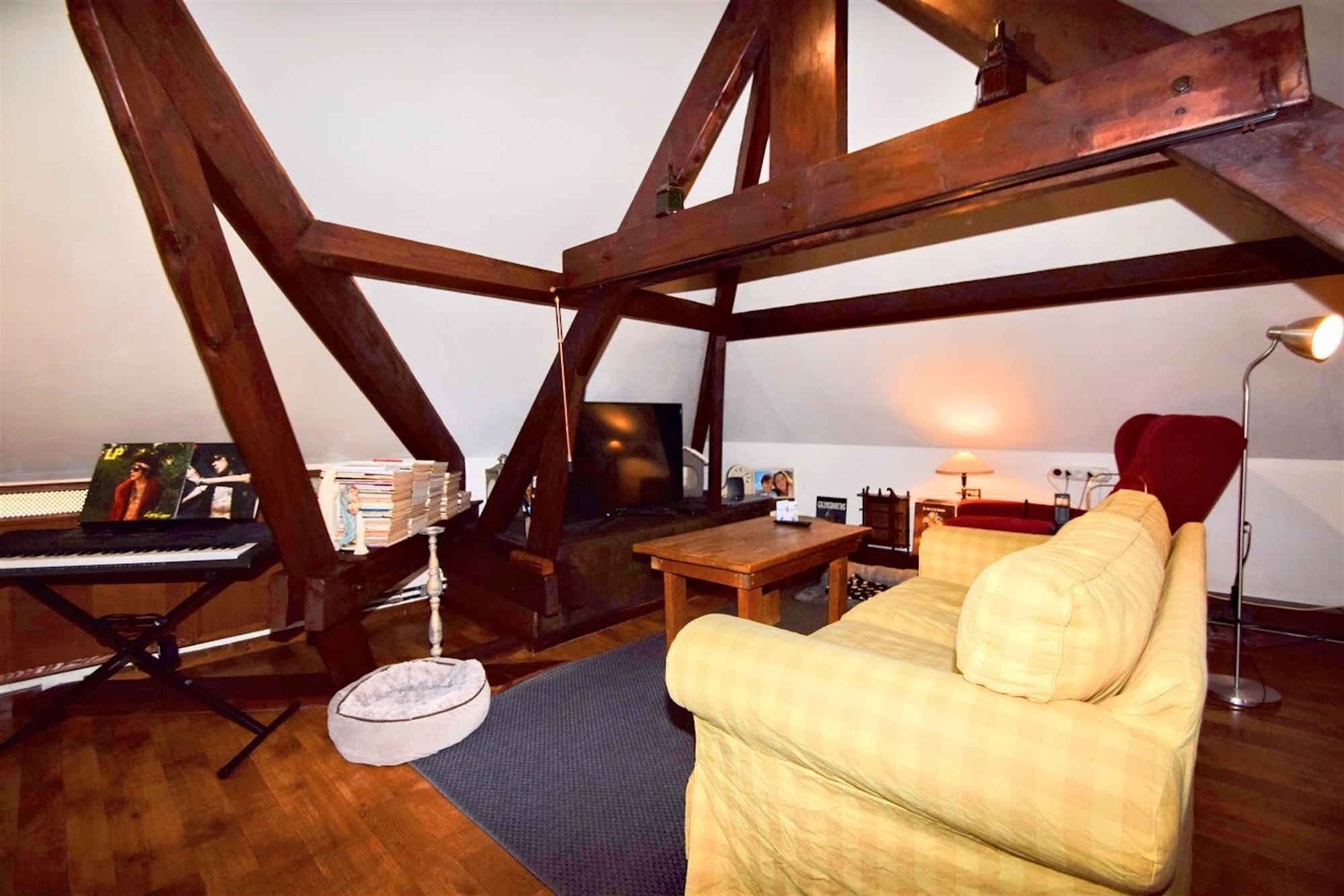 Les grandes fenêtres et les lucarnes permettent à la lumière naturelle d’inonder l’espace, créant une atmosphère chaleureuse et agréable tout au long de la journée.