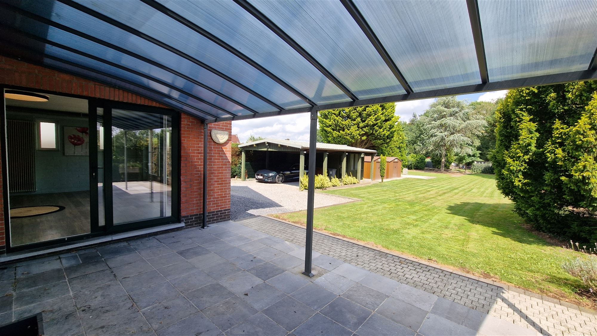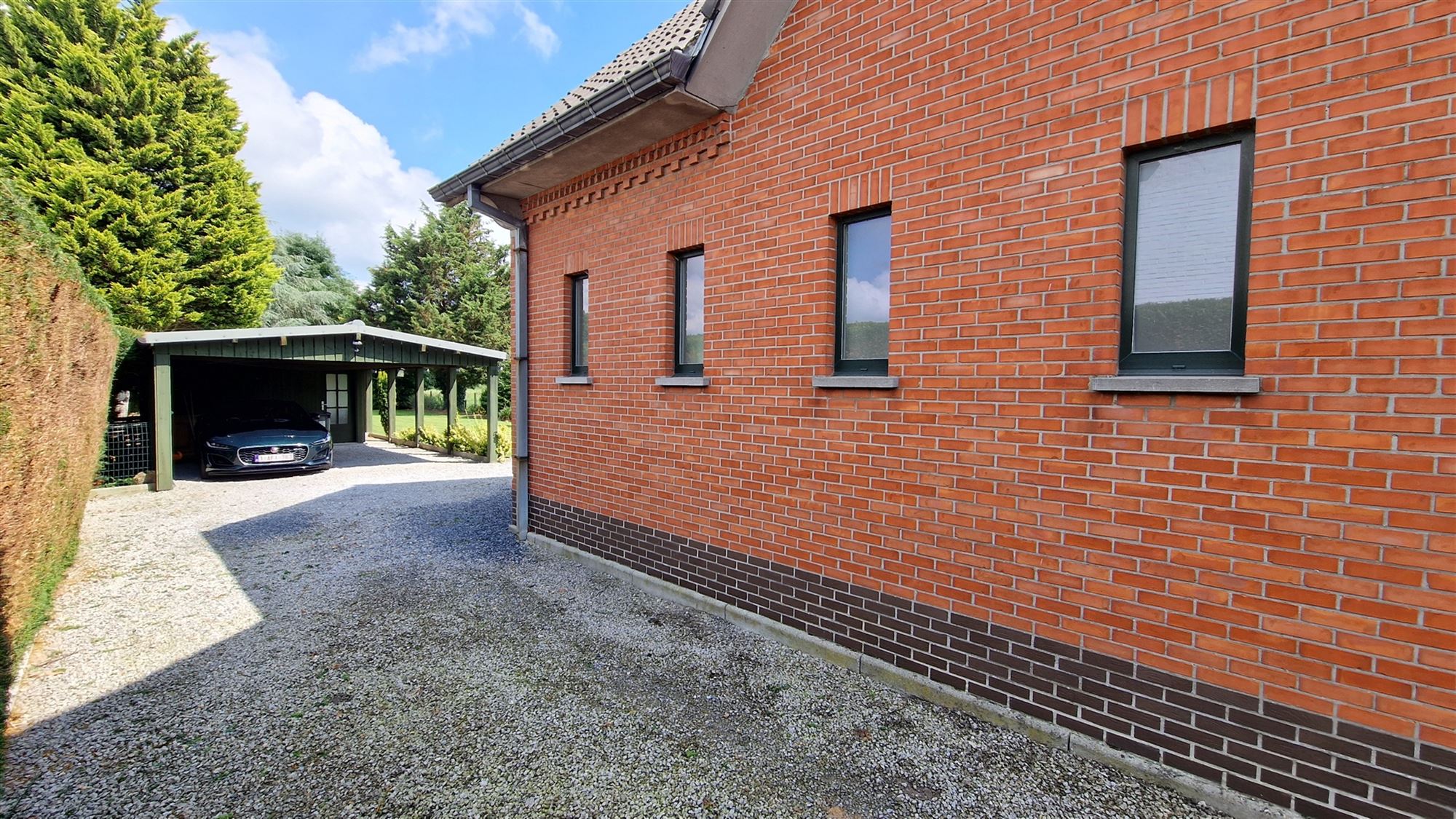 Le terrain généreux de 17a 11ca qui entoure la propriété offre de multiples possibilités pour les amoureux de la nature. Vous pourrez profiter du car-port accessible par le nouveau portail latéral et vous profiterez de nombreuses possibilités de rangement grâce aux petits abris métalliques.