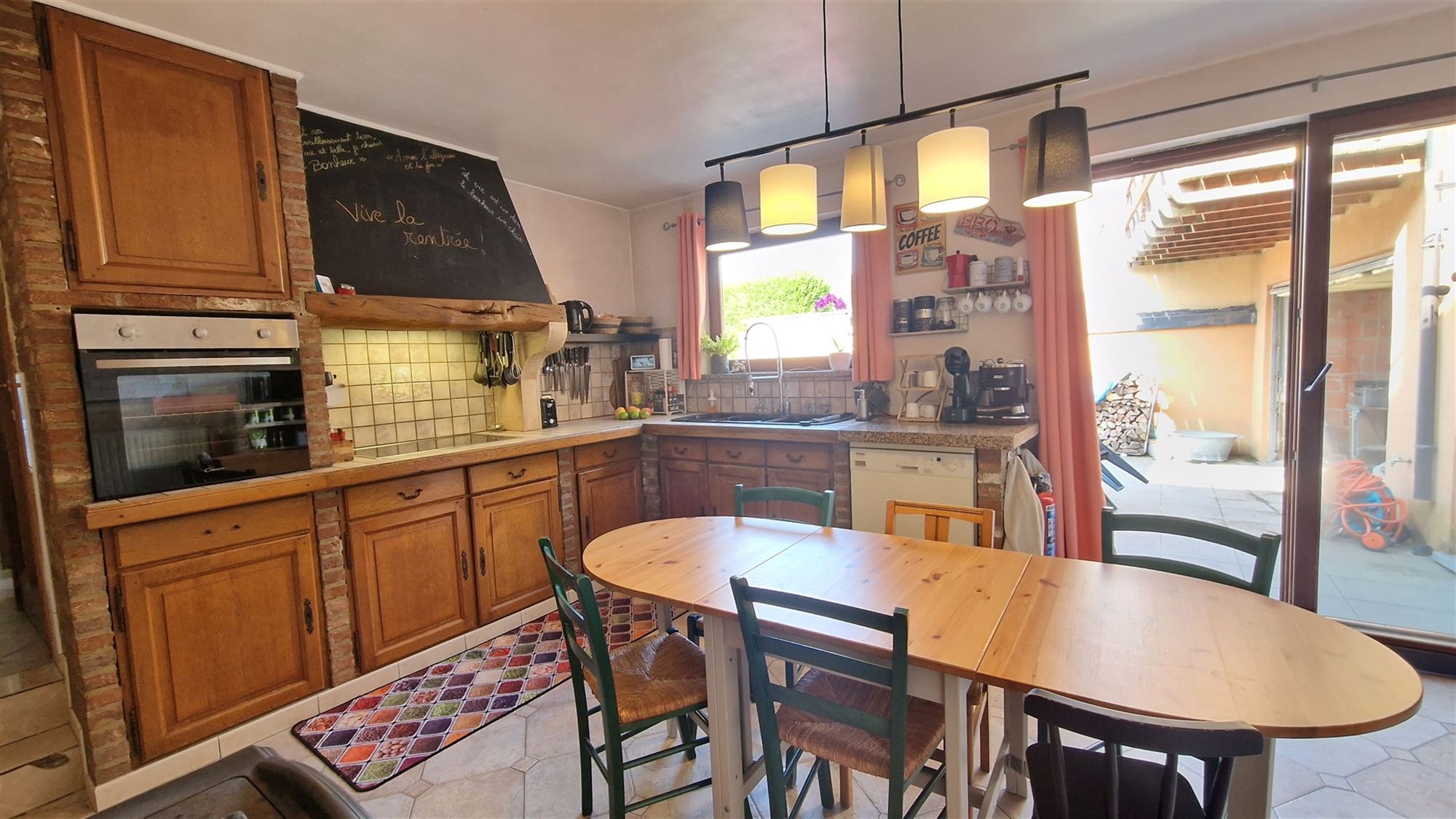 La cuisine, spacieuse et fonctionnelle, est prête pour préparer de délicieux repas. Le grand bureau supplémentaire est idéal pour le télétravail ou les études.