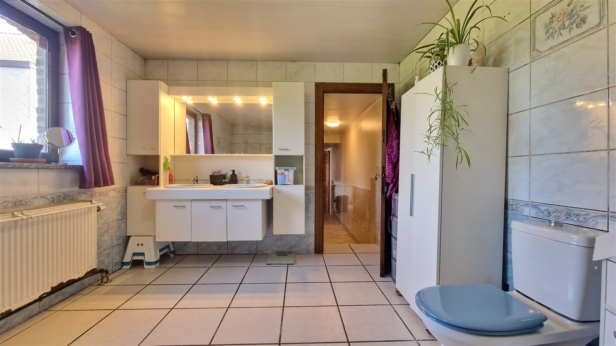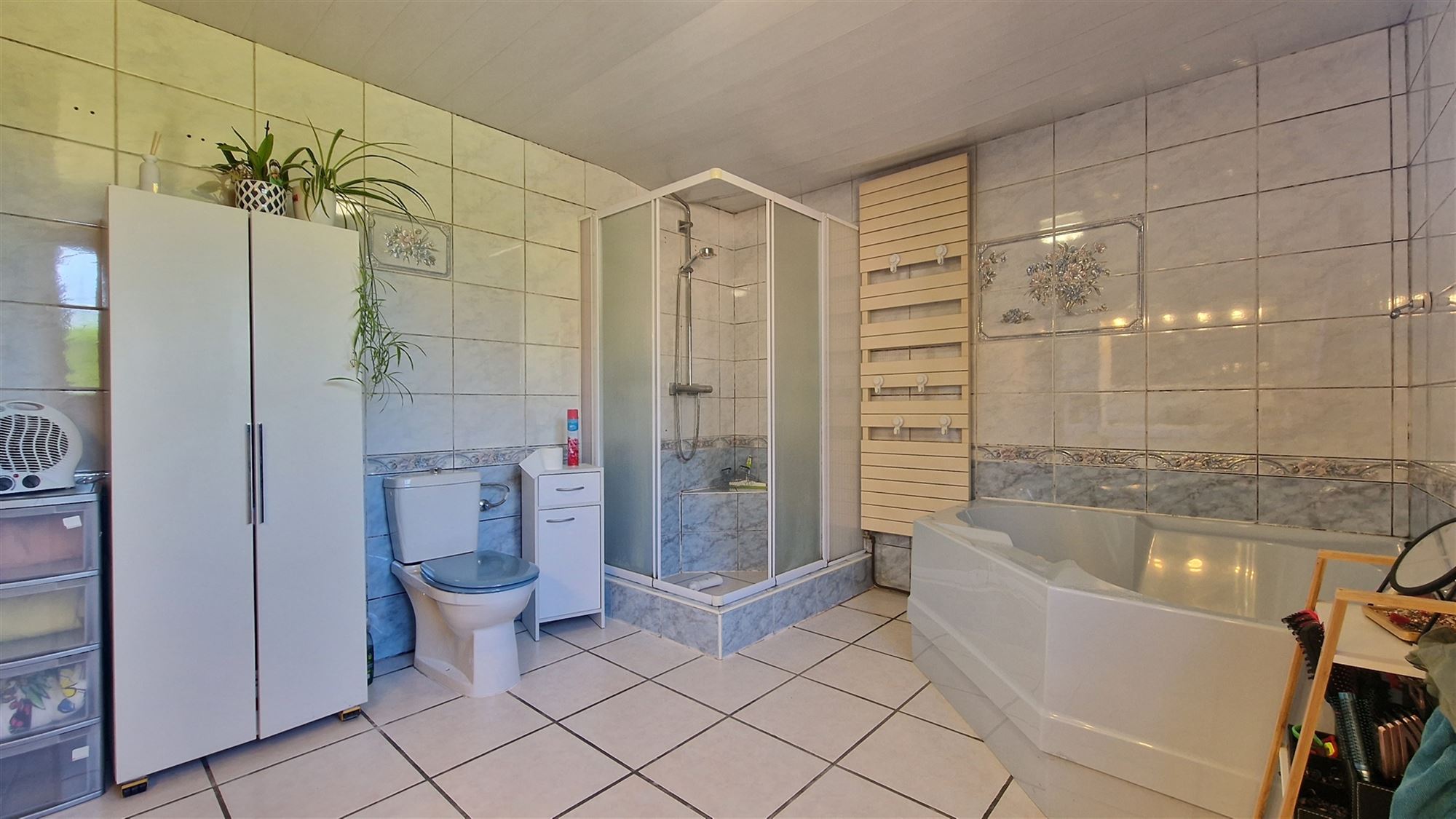 À l’extérieur, la maison bénéficie d’un vaste jardin de 10a 40ca orienté OUEST, offrant de nombreuses possibilités pour le jardinage, les jeux en plein air ou simplement pour profiter de la nature environnante. Un garage additionnel assure un espace de stationnement sécurisé pour votre véhicule.